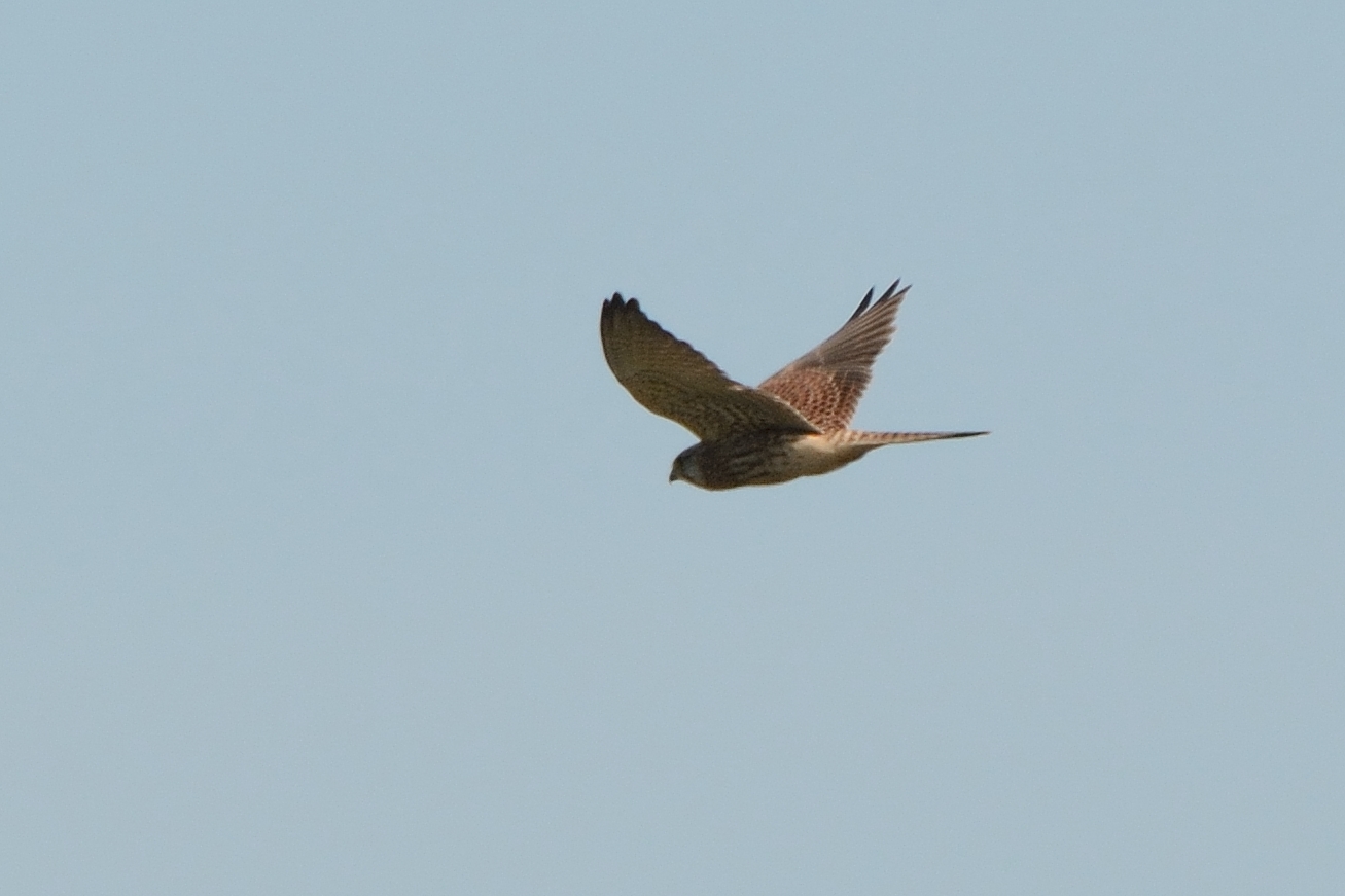 A Sparrowhawk circled overhead as we got out of the car. A check of the top end found almost no birds except for the Swallows passing over, and a distant Buzzard. I heard Skylarks calling and succeeded in picking them out against the blue sky. A minute later I heard a Crossbill calling and we spotted it passing westwards directly above us. A nice bonus bird. A Yellowhammer flew past and a Song Thrush shot out from a Rowan tree where it had been feeding on berries alongside a Blackbird. We headed down to the bottom end but it was equally as quiet with only Greenfinch added. A Willow Warbler was heard but went unseen. A pair of calling Siskins were noted when we made it back to the car. We debated where to go for an hour or so, eventually settling on Guardbridge.