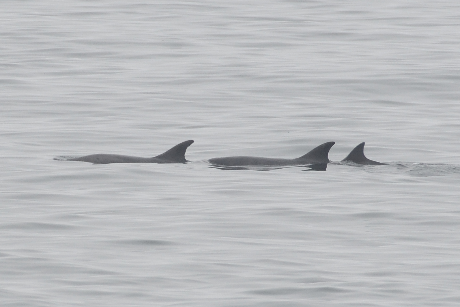 It didn't take too long before I spotted a distant Manx Shearwater shearing over the water quite far out. A small-ish flock of around a dozen Common Scoter passed by much closer in. A few Great Black Backed Gulls roosted on the rocky island just a little to the north of the hide. A Curlew flew south calling loudly. A few minutes later the tell-tale sign of dorsal fins breaking the surface not too far out got me a small group of Botlenose Dolphins - possibly a couple of adults and at least 1 probable youngster. After they had passed by rather slowly another marine mammal was seen - a Grey Seal.