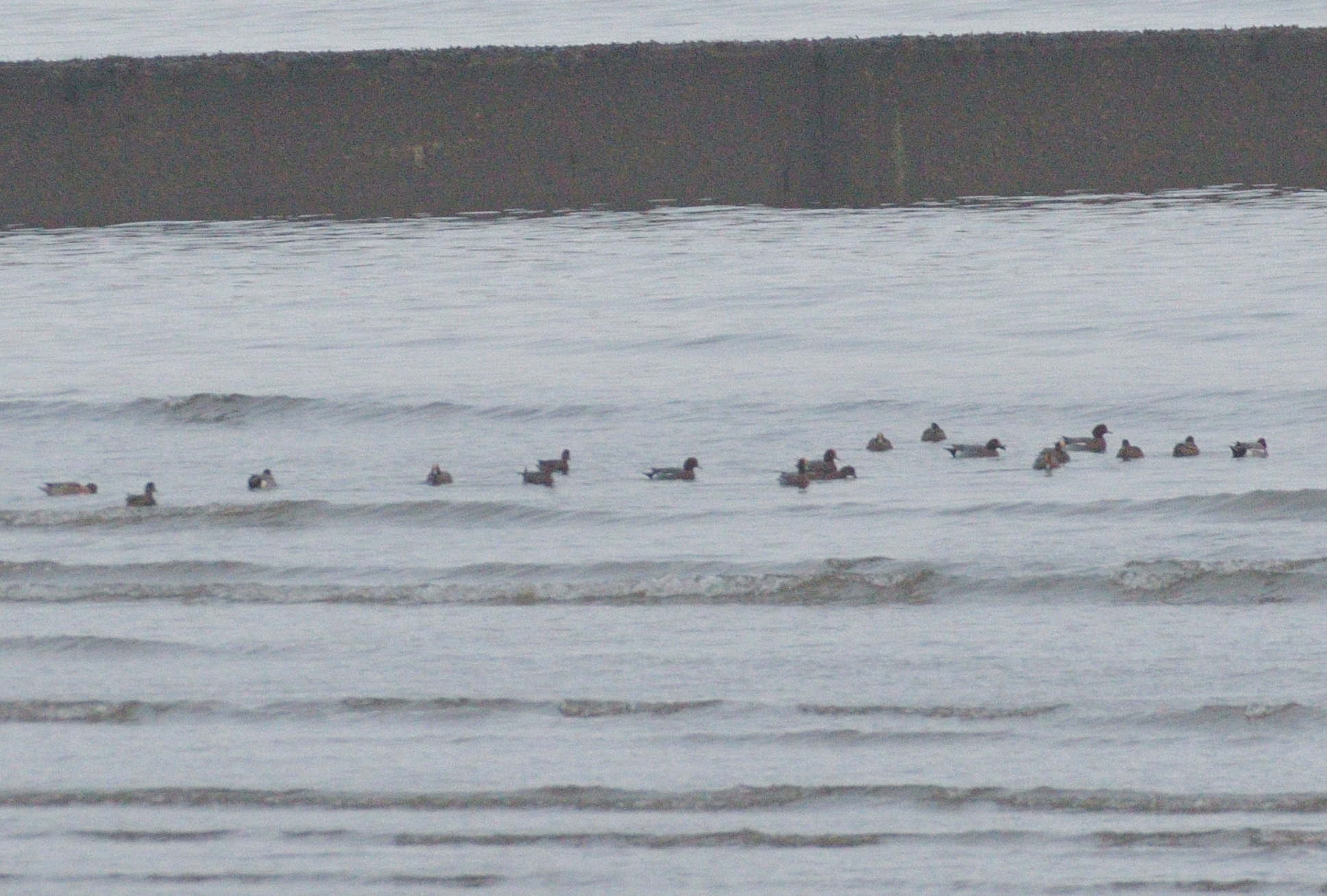 Thankfully, most of the walkers beyond the end of the esplanade were avoiding the areas most productive for finding birds. This did mean I was able to pick out Sanderling, Dunlin, Ringed Plover, Knot, Bar Tailed Godwit and Grey Plover though the numbers of most were rather low. Oystercatchers, Turnstones and Redshanks were also noted. On the water were more Eider, plus Wigeon, Mallard and Goldeneye. I scanned through the roosting and bathing gulls as the poor light got worse and it began to rain. Thankfully it didn't last too long and I was able to get partial shelter for a few minutes where the path cuts below the footbridge over the railway line. The gulls were much as expected with Herring Gulls, Common Gulls and Black Headed Gulls all I could make out.